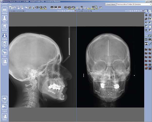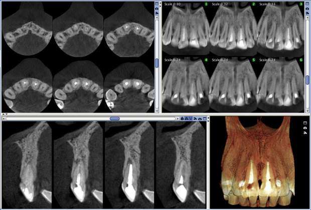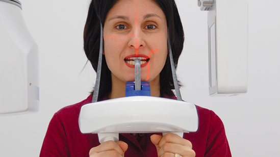 Digitale Volumentomographie (DVT) ist eine Röntgen- Bildgebungstechnologie, bei der auf einer Kreisbahn einzelne Projektionsaufnahmen eines Patienten aus unterschiedlichen Winkeln aufgenommen werden. Ein volumetrisches 3D-Bild der abgebildeten Region wird aus diesen 2D-Projektionen errechnet. Die daraus resultierende isometrische Ortsauflösung im Volumen kann mit unserem fortschrittlichen Bildbearbeitungsprogramm aus jedem Winkel in der axialen, koronalen und sagittalen Querschnittsebene betrachtet werden.